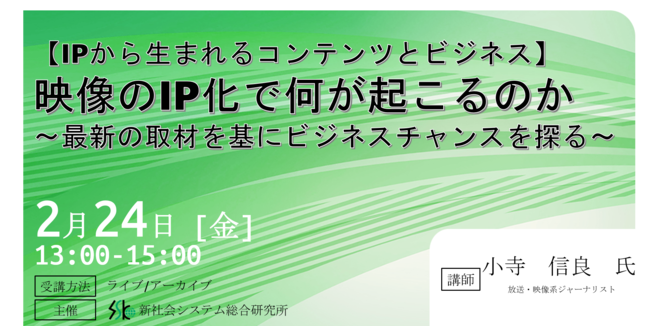 「映像のIP化で何が起こるのか」と題して、放送・映像系ジャーナリスト 小寺 信良氏のセミナーを2023年2月24日(金)に開催!!