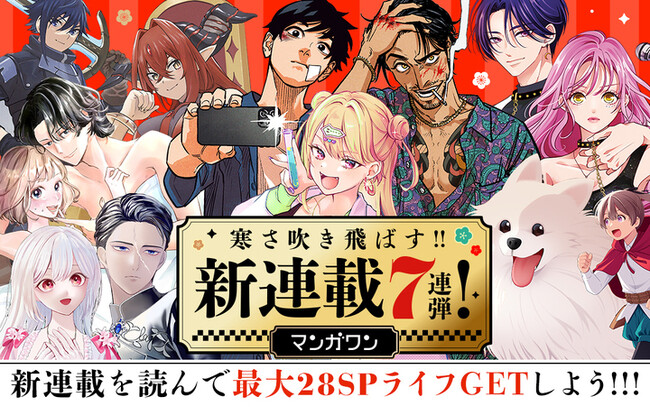 2023年12月29日より2024年1月8日まで、新連載が7作品スタートいたします。また、新連載を読むと最大28SPライフがもらえるキャンペーンも実施いたします。