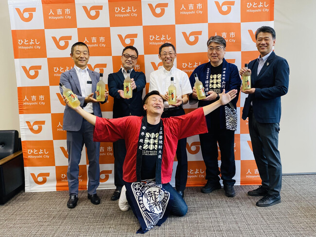 安井の報告を受け、松岡市長は「吉本興業様、及び安井様には被災時から継続的に復興・復旧に向け協力をいただいており、今回も球磨焼酎を全国に伝えるため、新商品まで開発していただき、とてもありがたい」と感謝の意を伝えました。