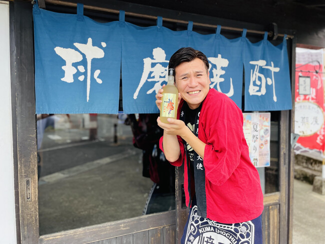 球磨焼酎オリジナルブレンド商品「感じる樽神輿イヤ〜ん」が「人吉市ふるさと納税返礼品」の取り扱いになったことを記念して、発起人であり商品開発の中心となった、吉本興業所属で熊本県在住芸人である「安井政史」が、