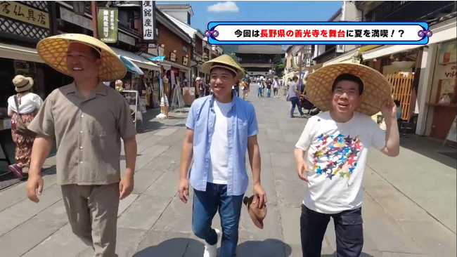 さらにその後は、「今日暑い…」と話すきよしが、仲見世通りのお土産屋で日よけの笠を購入したり、老舗の味噌屋で「みそソフトクリーム」を食べたりと善光寺探索を大満喫。