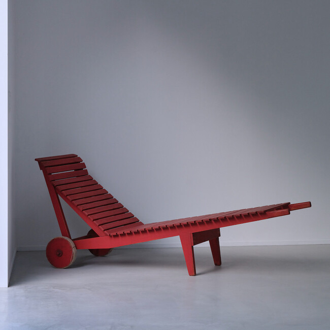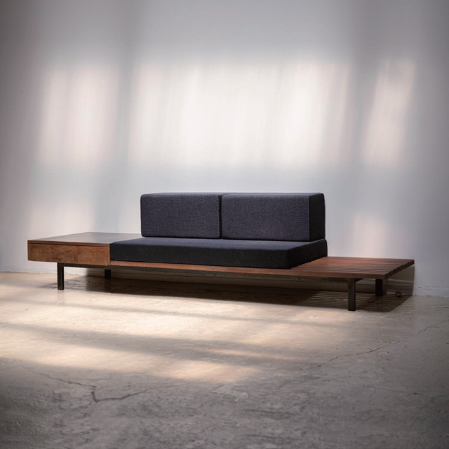 シャルロット・ペリアンによるベンチ。アフリカの鉱山町”Cansado” のプロジェクトのためにデザインされました。ペリアンが日本に来日された時に影響をうけてデザインされたものと感じ取れます。