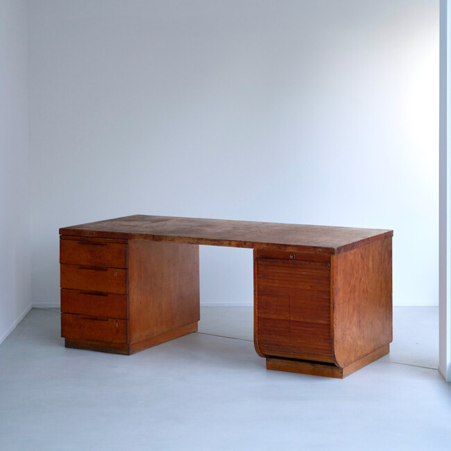 アイノ・アアルトが1932 年にデザインしたデスク。両面使えるデザインとなっており、スニラのパルプ工場の設計をした際にも近い型のモデルが収められています。初期に製造され幅182cm大型サイズは大変希少です。
