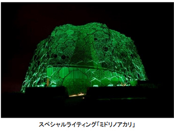また今秋は、同じく伏見氏が「シダレミュージアム」のイメージカラーである“緑色”に演出した特別なライトアップ「ミドリノアカリ」もお楽しみいただけます。