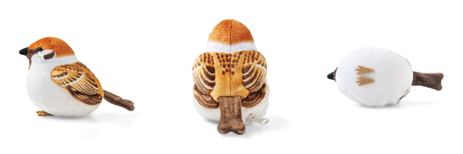 360度どこから見ても、本物のすずめにそっくり! 足までリアルに再現しています。