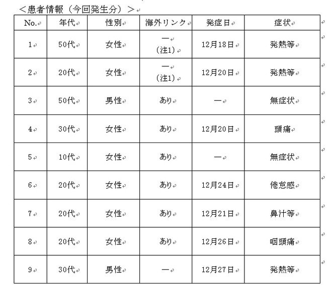 この度、東京都健康安全研究センターにおいて、変異株PCR検査でオミクロン株疑いが確認され、ゲノム解析を行った結果、下記のとおり、オミクロン株が判明したので、お知らせします。
