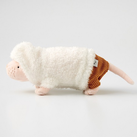 本物のハダカデバネズミは、体長10cm前後(しっぽ含まず)でとても小さいのですが、着衣デバネズミぬいぐるみは手のひらに乗せて程よい重みがある、大きめサイズに仕上げています。お部屋に飾るのはもちろん、おしゃれした「着衣デバネズミ」は、バッグに入れてお出かけにも連れて行きたくなります。