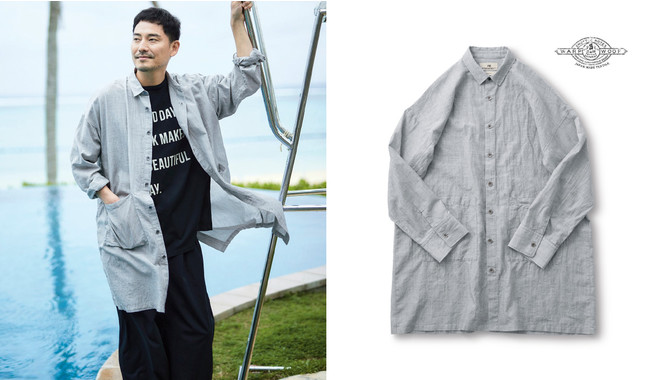 素朴な風合いと涼しげな透け感のある生地の極薄シャツです。生地は60番手の経糸に30番手の綿麻糸を通して甘く織り上げています。デザインはドロップショルダーのゆったりシルエットかつ、ロングな丈で、おしゃれ感を引き立たせます。