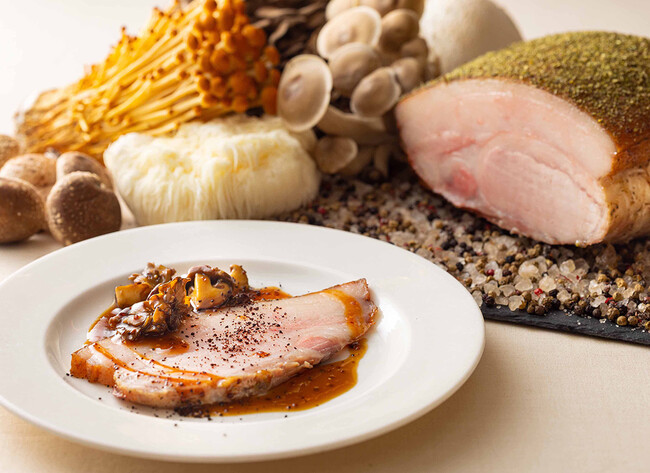 金華山沖で漁獲された「脂のりがよく美味しい」と言われる鯖は、バケットでサンドウィッチとしてご用意。トマトや赤玉ねぎとともにカラフルに仕上げ、おつまみとしてもお楽しみいただける一品です。また、スペシャルディッシュ(お1人さまにつき1皿・大人の方・土日祝限定)として、「石巻市リヤンド松浦の『幻の島豚』のロースト 茸マスタードソース」が登場。甘く柔らかな豚肉の味わいをご堪能ください。このほか、「荏胡麻豚」や「宮城県産森林どり」を使用したメニュー、「蔵王クリームチーズ」で濃厚に仕上げたパスタなどが登場いたします。