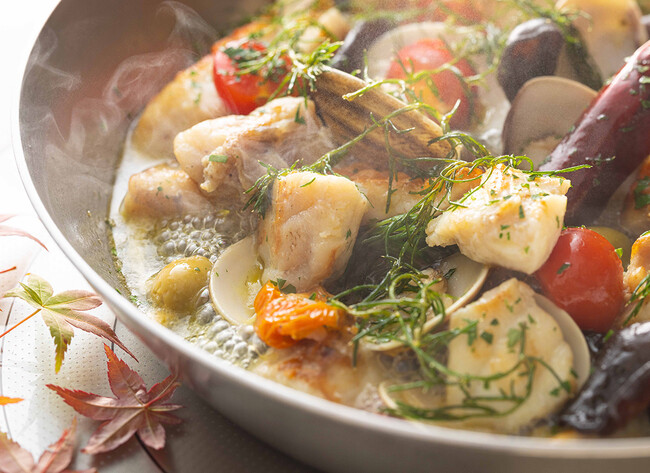 宮城県産 白身魚と有機生きくらげのアクアパッツァ (D)
