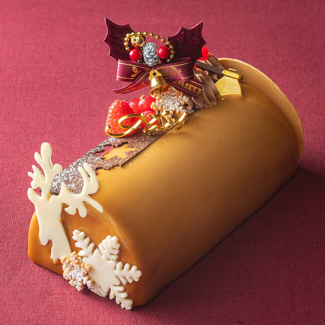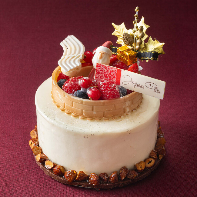 ご家族や恋人・ご友人同士で、温かなクリスマスのひとときになるように、との願いを込めてご用意いたしました。定番人気のホテル自慢のスペシャルショートケーキ「ガトー オ フレーズ プルミエ」をはじめ、今年は「ホワイト ノエル」、「ブッシュ ショコラ カラメル」が登場いたします。サンタクロースが煙突から家の中に入って行く様子をイメージした「ホワイト ノエル」は、コンデンスミルクのムースと甘酸っぱいイチゴジュレを合わせた優しい甘さのケーキ。底面に敷いたチョコレートのザクザクとした食感は、皆さまでお楽しみください。また、「ブッシュ ショコラ カラメル」は、濃厚なカラメルショコラのムースに、洋梨のジュレと紅茶のクリームを組み合わせました。アルコール不使用なので、お子さまとご一緒にお召し上がりいただけます。