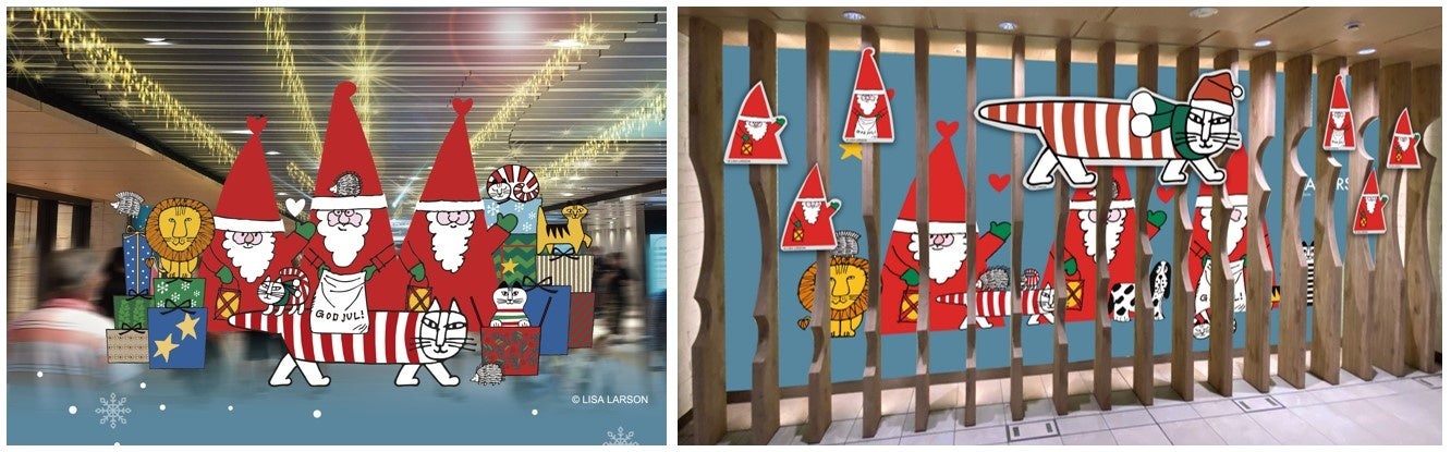 今年は“サンタ”をテーマに掲げ、スウェーデンを代表する陶芸家「リサ・ラーソン(1931-2024)」が描いたサンタや、人気キャラクターの猫のマイキー、はりねずみなどが、館内の雰囲気を盛り上げます。
