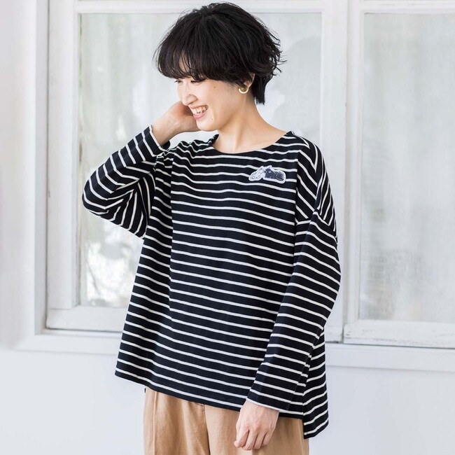 【NEW】シルエットゆったりで大人顔 猫が遊ぶボーダートップスの会