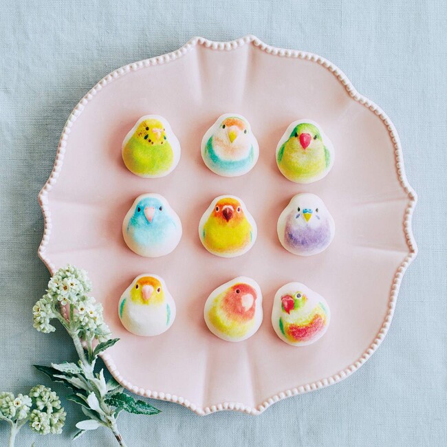 小鳥部 仲間が勢ぞろい ミニ和風マシュマロ インコのほうずい第2弾〈チョコ餡(あん)〉