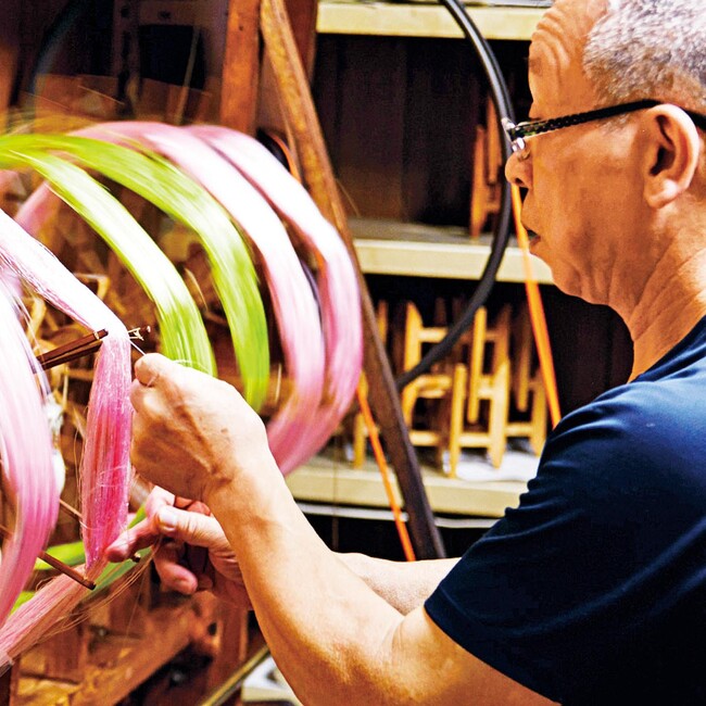 光によって織地の表情が変わる繊細な色味の光沢は、西陣織ならではの魅力です。