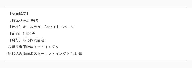 本日発売 #韓流ぴあ 9月号 リニューアル創刊第1号は #ソイングク が表紙巻頭を飾る! 新たな特典も!