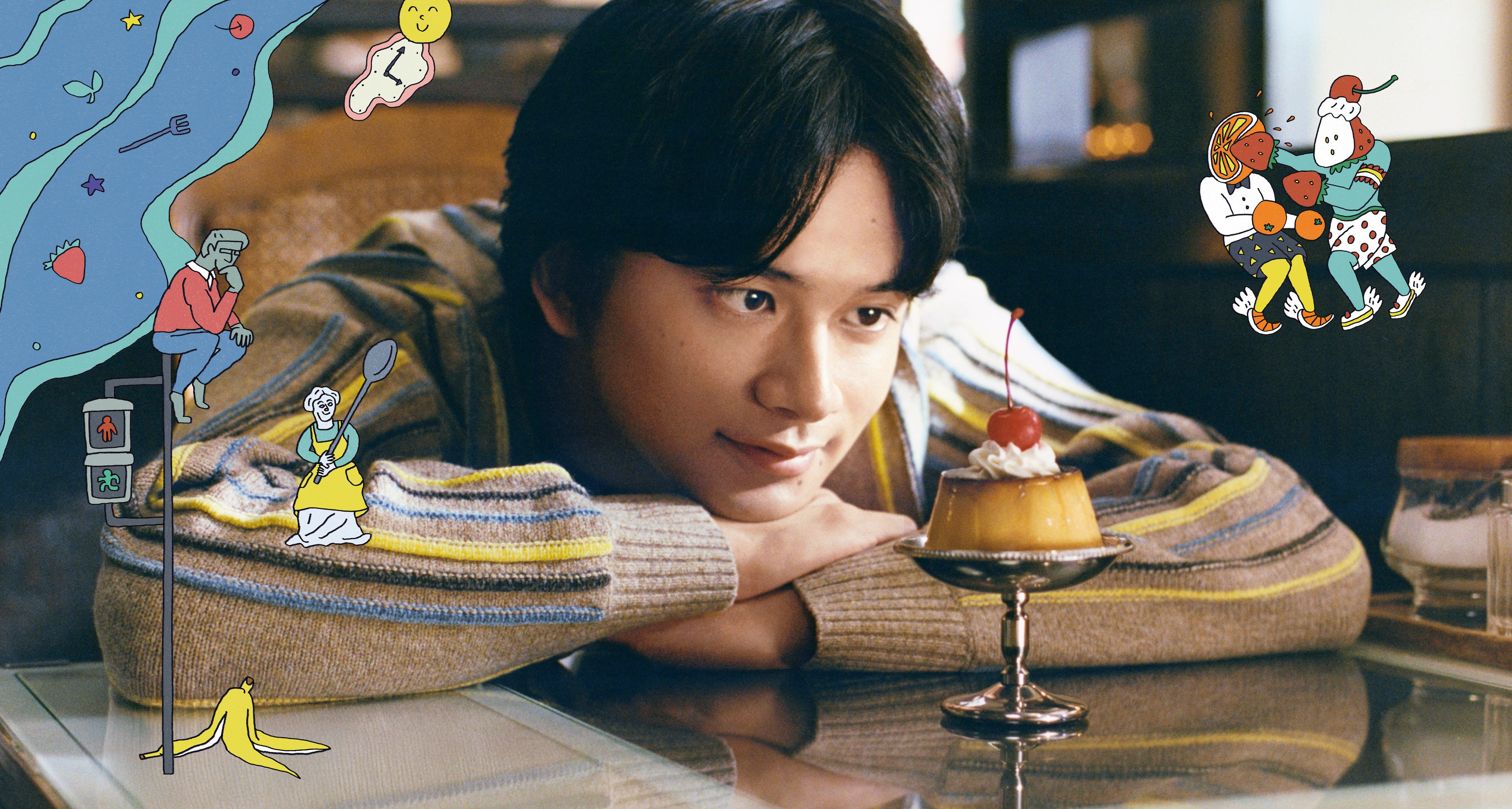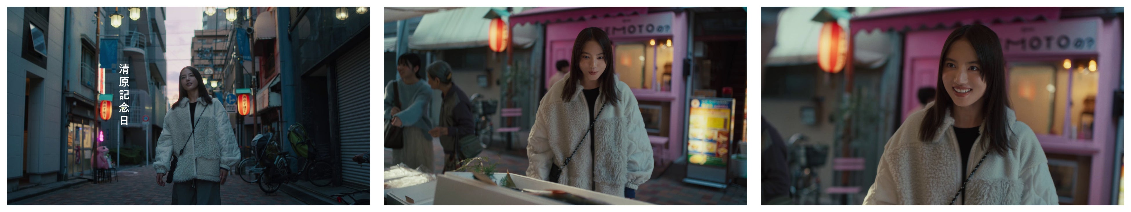 動画では、とある商店街を舞台に、北村匠海さん、清原果耶さんの他、ユカリ役の真雪さん、マモル役の辻陸さんを含めた4名が、日常の中でいつもと違う場所に出かけたことをきっかけに、素敵な何かとの「まさかの出会い」を果たします。登場人物にとって大切な日になったことを、記念写真を撮る描写でポップに表現。予想外の出会いに心が躍るラストシーンは、イラストレーターのエビアヤノさんによるイラストが盛り上げます。