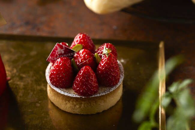 「プティルージュ」は、自家製のあまおうムースやアールグレイのババロアの甘さと、タイベリーコンフィチュールの酸味のコントラストをお楽しみいただける、見た目も華やかな一品に仕上げました。「タルトフレーズ」は、フランボワーズのジャムとカスタードクリームの入ったタルト生地に、フレッシュないちごを飾りました。