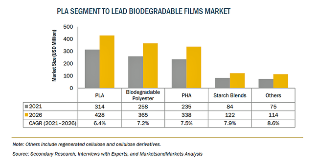 生分解性フィルムの市場規模は、2021年の10億米ドルからCAGR7.2%で成長し、2026年には14億米ドルに達すると予測されています。プラスチック廃棄物とその環境への悪影響に関する意識の高まりは、同市場成長の主な要因の一つです。さらに、食品包装業界での需要の高まりや、農業・園芸分野での需要なども、生分解性フィルムの市場成長に寄与しています。