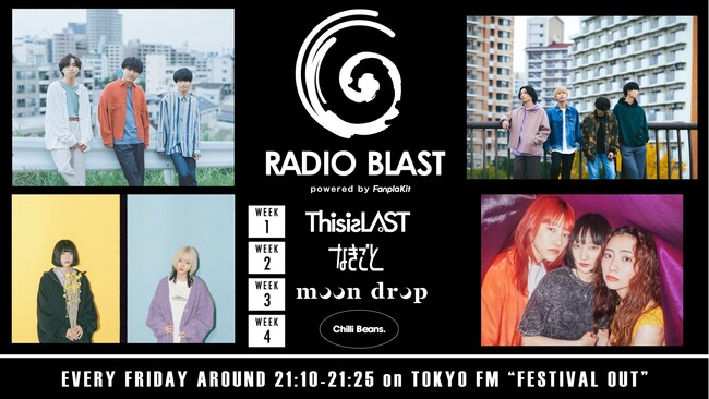 TOKYO FMで毎週金曜日21時から放送中の、“今、一番きいてほしい邦楽ロック”をお届けする番組『FESTIVAL OUT』では、番組内コーナー「RADIO BLAST powered by Fanpla Kit」(21:00〜21:15頃放送)のパーソナリティを4月からリニューアルし、新規アーティストが週替わりで担当いたします。
