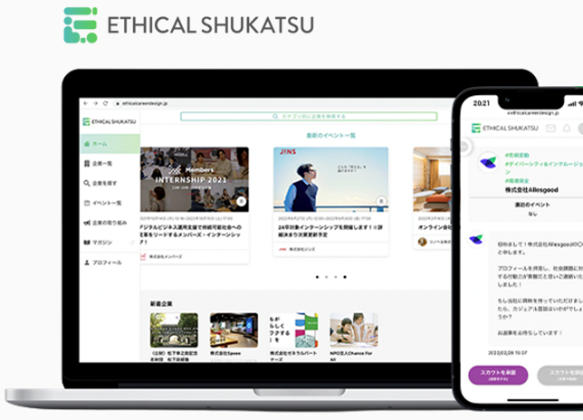 アレスグッドは、「テクノロジーで産業界のSX (サステナビリティ・ トランスフォーメーション) を加速させる」をミッションに掲げ、社会課題に取り組む企業と学生をつなげる採用プラットフォーム「エシカル就活」を運営しています。当社グループも「エシカル就活」のサービスにて、インパクト実現に向けたさまざまな取り組みについて情報を発信しています。