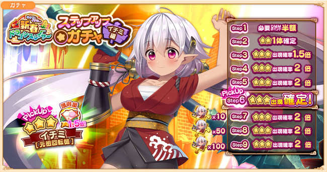 DMM GAMES『救世少女-メシアガール-』にてイベント『キナコとイチミの新春ドラゴンスレイヤー』が開始!新規デコ『キナコ[初春の神楽師]』『イチミ[元祖回転槌]』が登場