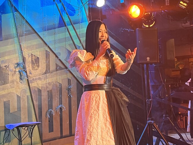 「発売の次の日にここでライブさせていただくこと、幸せです。日頃の皆さんへの感謝を込めて歌いたいと思います。このライブハウスは、今回の曲のプロモーションビデオを撮影した場所です。撮影ではバンドさんにも来ていただいて初めてLIVEの雰囲気で映像を作らせていただきました。今回の新曲を発売するにあたっては曲の雰囲気も変わったこともあって、初めてのカメラマンさんに撮影していただいたり初めて衣装を作っていただいたりと、初めてづくしな作品作りでした。あらたな門松みゆきの一面を見ていただけたら嬉しいです。」と話し、