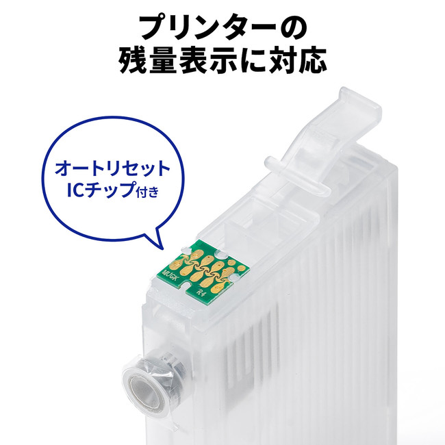 情報をリセットするオートリセットICチップ付きで、詰め替えたインクカートリッジでもプリンターのインク残量検知・表示機能に対応します。