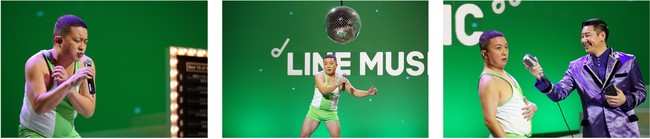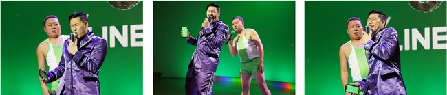 新CMでは歌番組風のスタジオを舞台に、タンクトップ姿の個性的なアーティストに扮した松尾さんと、破天荒司会者に扮した長田さんが登場。「音楽聴き放題」、「対象LINEスタンプ使い放題」の喜びを表現した楽曲『君のスマホでLINE MUSIC』を独特で中毒性のあるダンスと歌声とともに披露します。
