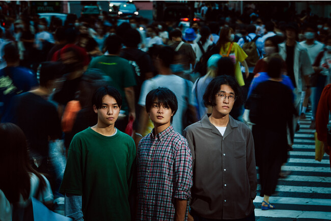 <写真左から、岡野創太(Dr&Perc&Cho) / 林龍佑(Gt&Vo) / 上遠野日向(Ba) >
