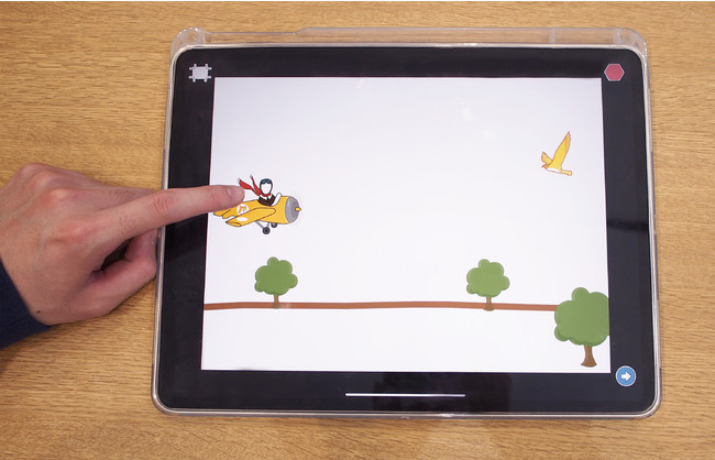 木や飛んでくる鳥をよけながら、飛行機で進むゲームです。鳥の動きは自分の好きなようにアレンジすることができます。鳥の動きを複雑に設定して、友だちやおうちの方と勝負すると面白いでしょう。