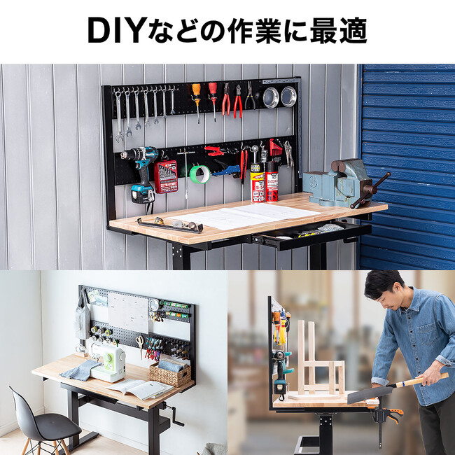 サンワサプライ株式会社(本社:岡山市北区田町1-10-1、 代表取締役社長 山田 和範)が運営している直販サイト『サンワダイレクト』では、手動で上下昇降することができ、市販のフックやマグネットを取り付け可能で、工具やねじなど細かいものを収納可能な手動昇降作業台とペグボードと引き出しのセット品「100-ERD035LM」を発売しました。