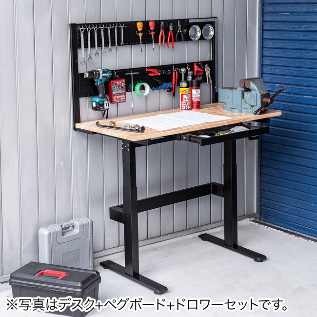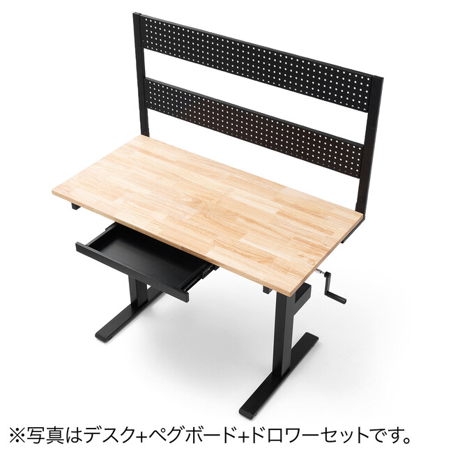 手動昇降デスクセット品 ペグボード 引き出しセット