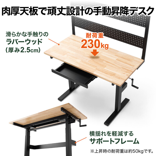 総耐荷重約230kg!作業がしやすい高さに調整して身体への負担を軽減できる手動昇降デスクを発売
