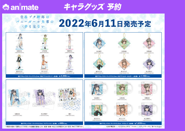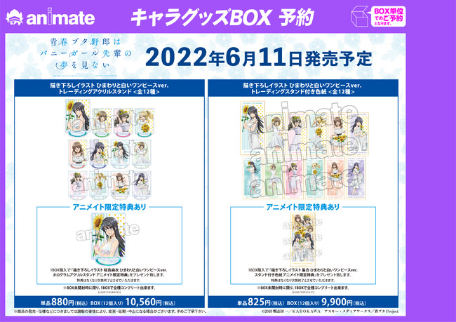 ※対象商品は、『青春ブタ野郎はバニーガール先輩の夢を見ない』アニメイトフェア in 2022の先行販売商品、先行予約商品のみとなります。