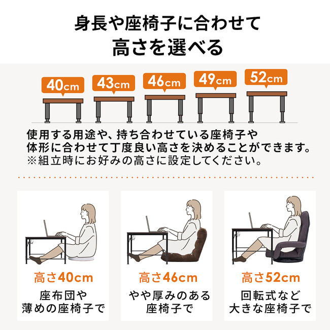 選べる高さ5段階!身長や座椅子に合わせて使いやすいローデスクを1月18日に発売