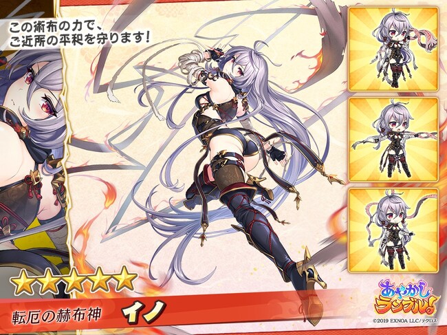 合同会社EXNOA(本社:東京都港区、CEO:村中 悠介、URL:https://games.dmm.com/)が運営するDMM GAMESにおいて、あやかし美少女たちと冒険する、迎撃型爽快スキルバトルRPG『あやかしランブル!』(https://ayarabu.jp/)は、5月31日から、新たに「★5 イノ」「★5 スクナビコナ」を追加したことを発表しました。