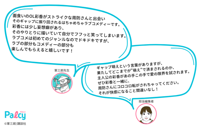 『周防さんのてのひらで転がされてます。』(軍三郎)2022年4月30日(土)よりマンガアプリPalcy(パルシィ)にて連載配信をスタートします。