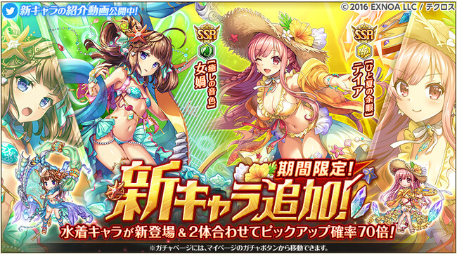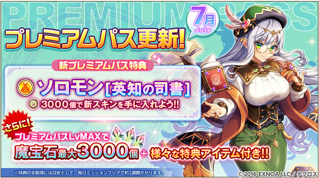 合同会社EXNOA(本社:東京都港区、CEO:村中 悠介、URL:https://games.dmm.com/ )が運営するDMM GAMESにおいて『神姫PROJECT』は、「女媧」「テイア」が新衣装で登場する事を発表した。さらに6月26日よりプレミアムパスの特典が更新された。
