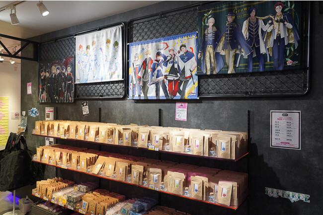 また、フロアの一角では、テイクアウト用のお茶が販売! キャラクターたちのイメージが落とし込まれたお茶を楽しむことができます。