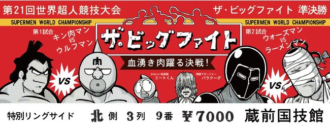 しおりは全て「1980年代に、もしも実際に超人の試合が行われていたら?」というコンセプトの元、人気イラストレーターのヨシムラ・ヨシユキ氏がデザイン。当時の昭和レトロな色使いや雰囲気を忠実に再現してみせた。あえて印刷の粗さを表現したり、座席番号のスタンプのインクをにじませたりするなど、非常に芸が細かい!