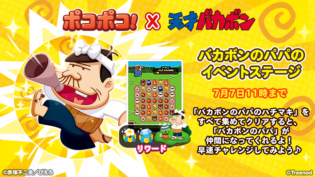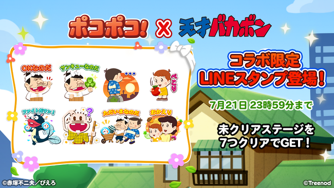 LINE株式会社は、当社が展開する3マッチパズルゲーム「LINE ポコポコ」(iPhone・Android対応/無料)と、アニメ『天才バカボン』とのコラボレーションイベントを本日より開催します。