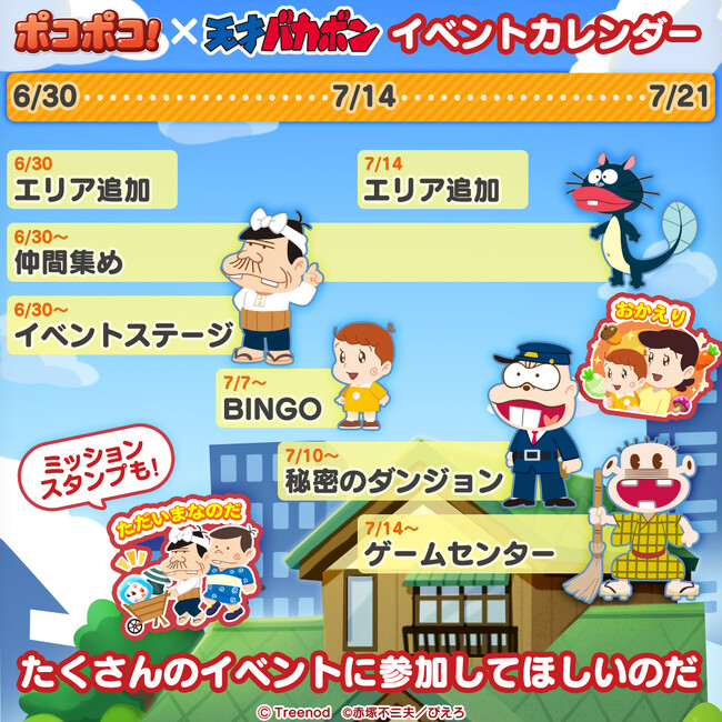 「バカボンのパパ」「ウナギイヌ」「レレレのおじさん」など、『天才バカボン』コラボ限定仲間を手に入れよう!
