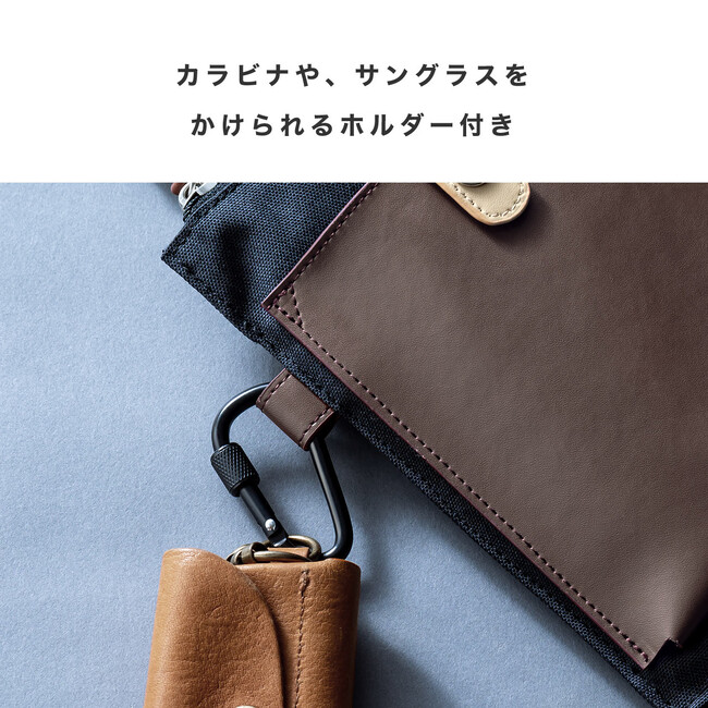 カラビナやサングラスなどをかけられるホルダー付きです。