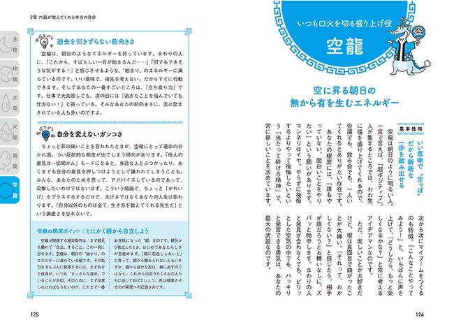 1章では、そもそもの占いの考え方や、六龍法の成り立ちについて面白く解説し、3章では、龍が目覚める準備としての簡単にできる毎日の開運習慣を紹介。