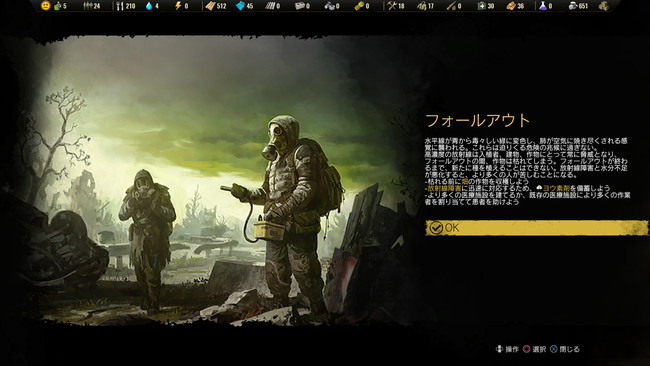 「フォールアウト」には医療施設、「冬嵐」には住居や作業場を温暖に保つための燃焼炉が必要になるなど、襲来する大災害によって対策方法は異なります。