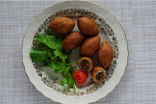 見た目がどこかかわいらしい、ブルグル(ひき割り小麦)でひき肉を包んで揚げた料理も。