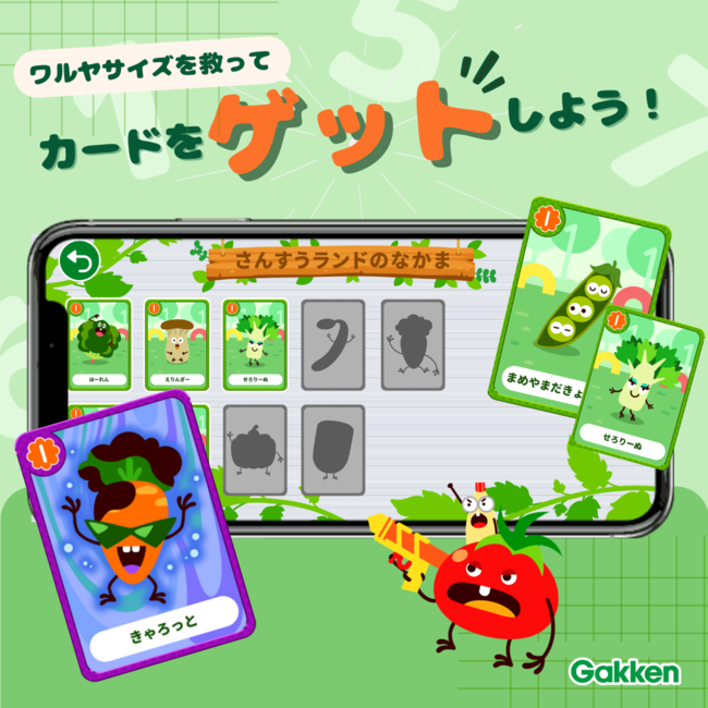 学研から、3〜5歳のお子さんにぴったりの「かず」と「さんすう」が学べる知育ゲームアプリが登場! 先行リリースのマップ1では、20までのかず・ちえの力が、ユーモアあふれるキャラクターと演出で自然と身につく!