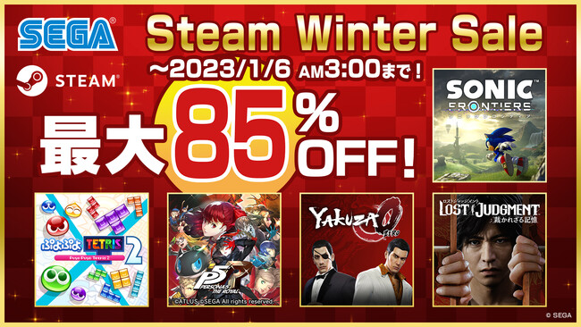 株式会社セガは、Steamにて販売中の一部PC用セガ・アトラスタイトルを対象とし、期間限定で特別価格にて販売する「Steam Winter Sale」を開催中です。