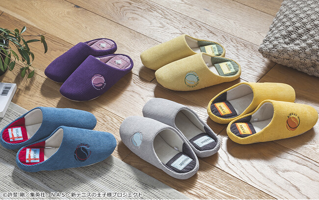 青学、氷帝、立海、比嘉、四天宝寺をイメージしたルームシューズ。